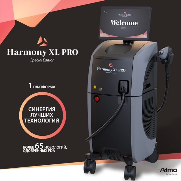 Harmony XL Pro (Alma Lasers, Израиль) – многофункциональная платформа «все включено» с 5 инновационными технологиями, разными насадками и наконечниками под конкретную задачу. Аппарат позволяет сочетать методики в одной платформе для лечения более 65 показаний, одобренных самой жесткой медицинской сертифицированной системой FDA (фотоомоложение, удаление сосудов, пигментации и др.).