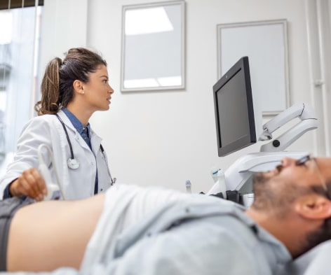 Пациент ложится на спину, оголяя живот, манипуляции выполняются в области брюшной полости. На кожу наносится специальный гель, при помощи датчика врач осматривает органы мочевыделительной системы и надпочечники.