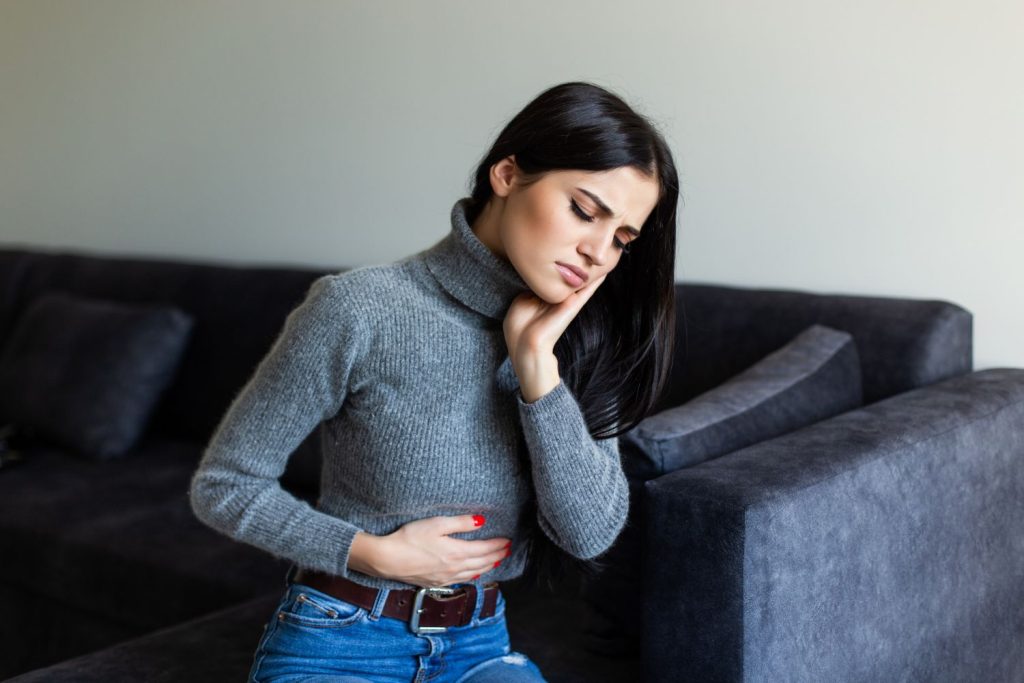 Регургитация. Ощущение горечи или кислоты во рту возникает из-за увеличения давления в брюшной полости. Итеративный заброс в легочные пути может спровоцировать приступ удушья, жесткий кашель, развитие бронхопневмонии и пр.