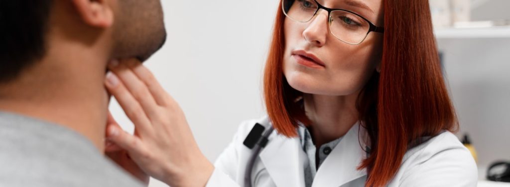 Затем доктор проведет объективный осмотр, в частности — пальпацию щитовидной железы, измерение артериального давления, оценку наличия отечности нижних конечностей, лица и других параметров организма.