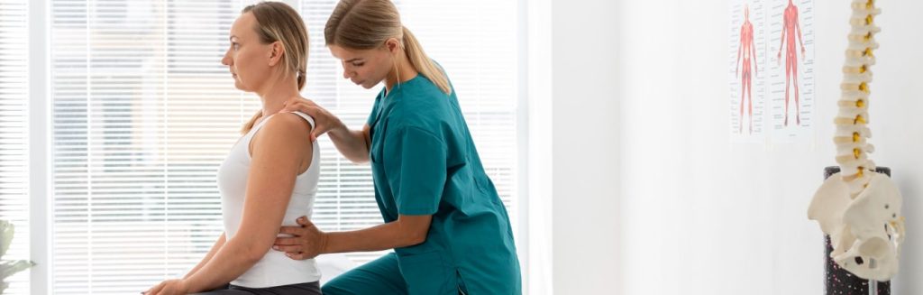 - Визуальный осмотр тела в сидячем, стоячем, лежачем положениях с целью выявления характерных для данного заболевания признаков, в частности асимметрии туловища, искривления тазовой части тела, грудной клетки и так далее.