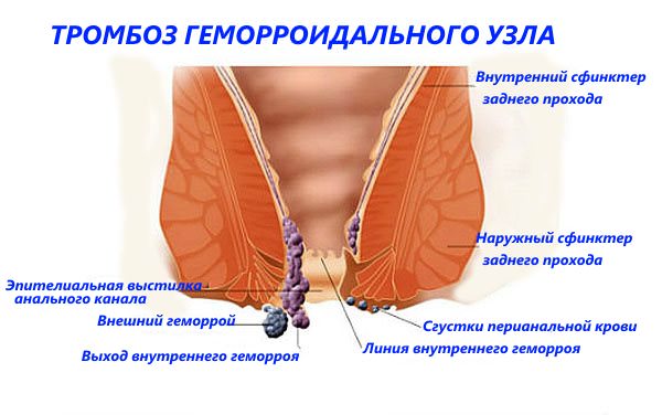 Тромбоз геморроидального узла – это, по сути, осложнение течения запущенного геморроя. Геморрой, являющийся прямым следствием варикоза вен, снабжающих кровью прямую кишку, ведет к формированию утолщений, или уплотнений. Прогрессирование варикозного расширения вен в области выхода прямой кишки ведет к тому, что болезненное расширение увеличивается и покидает зону анального отверстия.